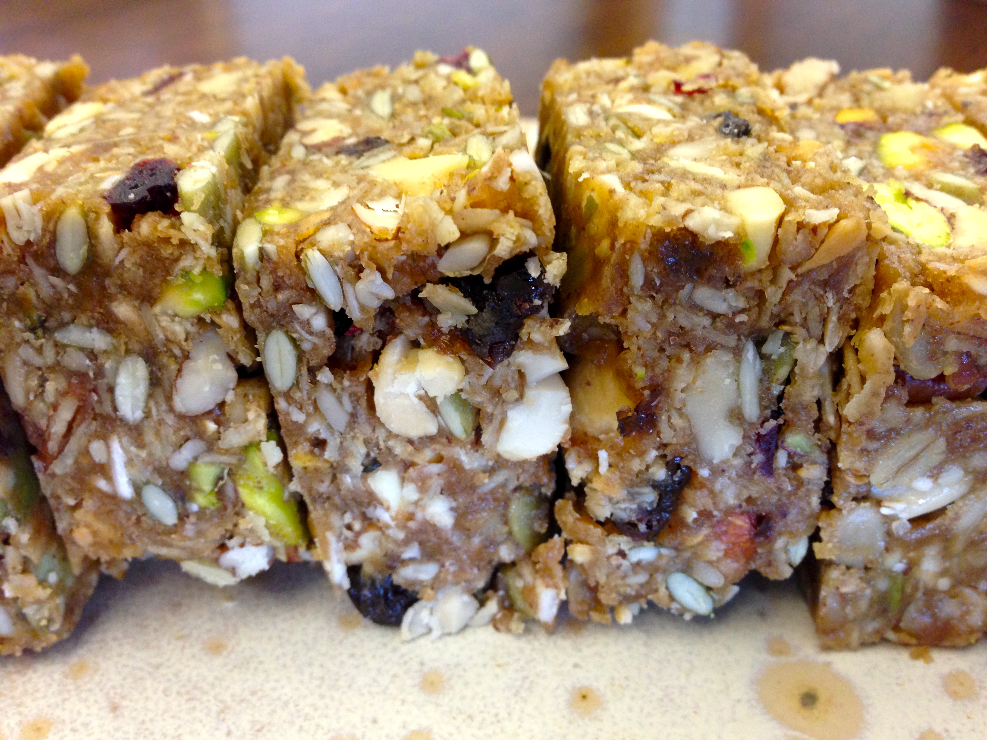 Developing a new granola bar recipe is a delight. I have been making the same recipe for quite some time now and wanted to branch out a little, expand my horizons in the granola bar world! In my opinion, there are far too many processed, sugar laden, chocolate coated choices at the grocery store and I believe it is much better to make your own using wholesome ingredients.