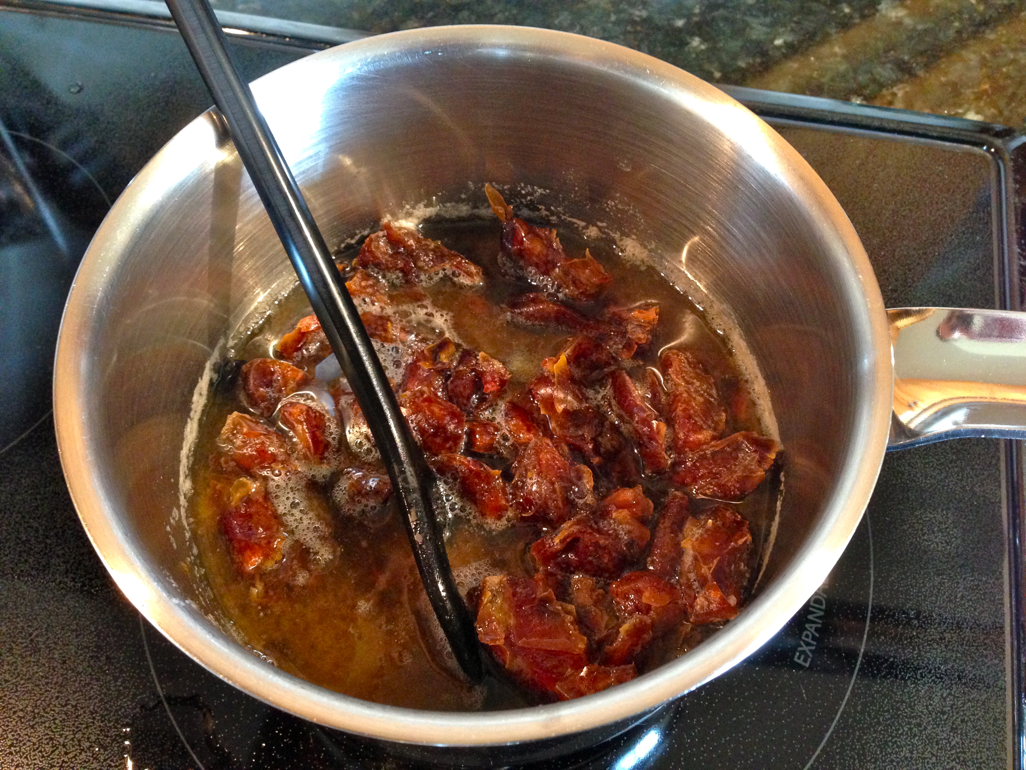 You will notice the raisins and cranberries puff up from the heat of the mixture. Perfect, you’re doing it right!