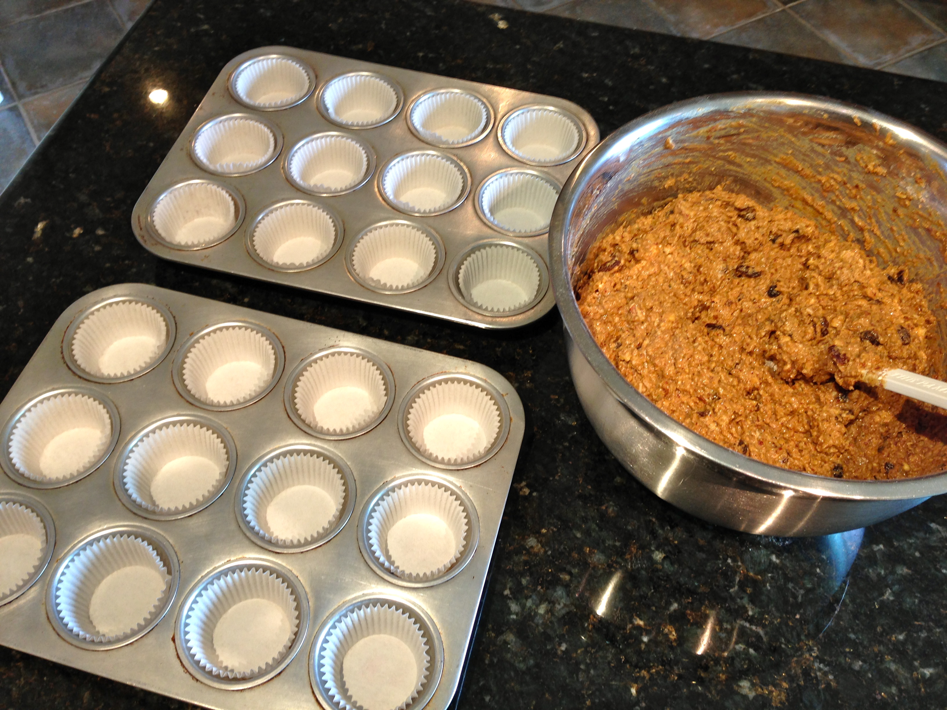 Start by checking to see if you have muffin liners. I cannot tell you the number of times I go to make muffins or cupcakes and I have no liners. Save yourself some time and make sure you put them on your grocery list! If you have them, go ahead and preheat your oven to 350ºF and line muffin tins with liners.