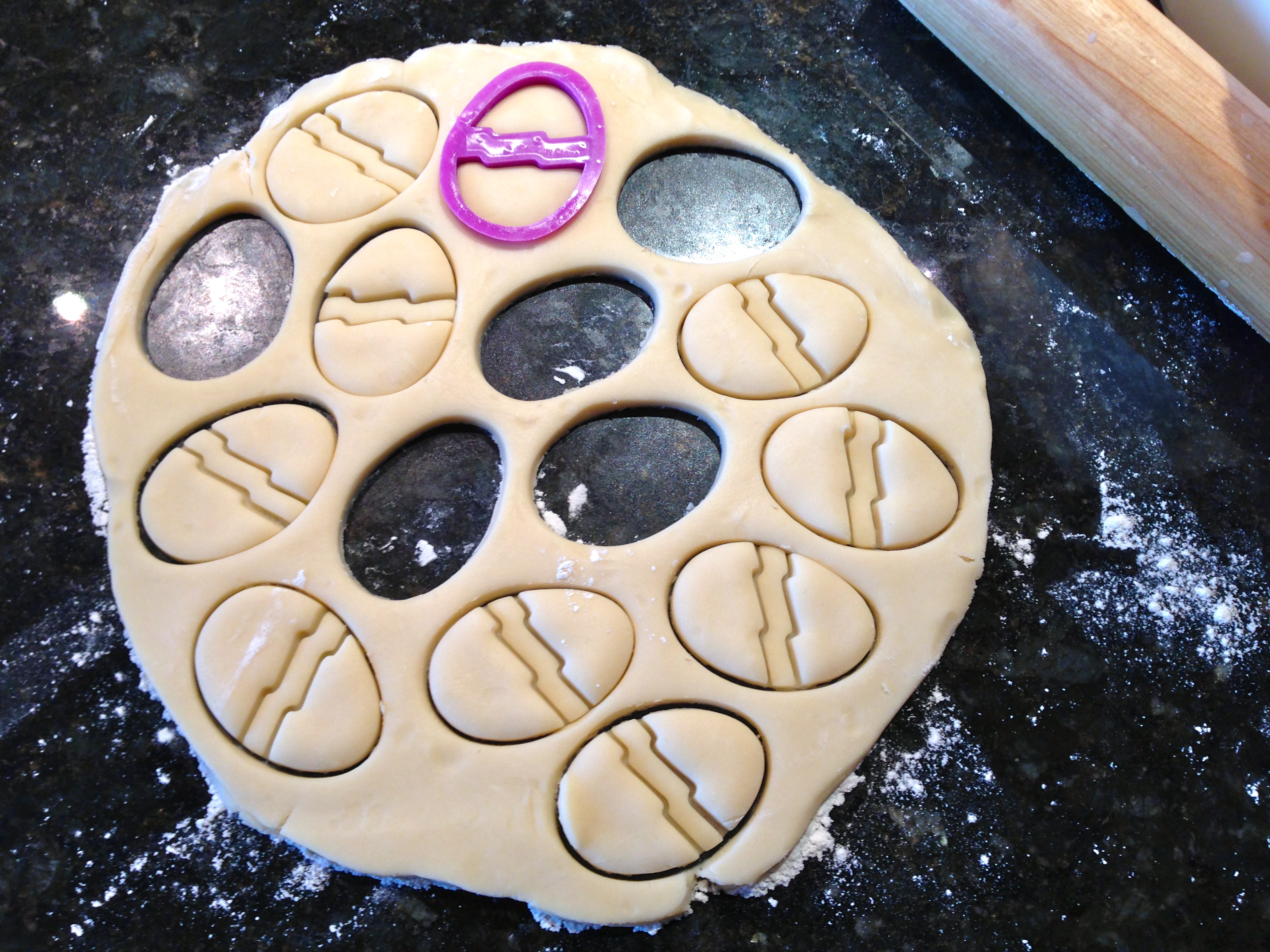 Once chilled, roll the dough out on a floured surface using a rolling pin. Try not to make it too thin, approximately 7.5 millimeters to be exact. Use your choice of cookie cutters and go to town!